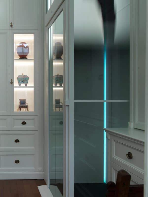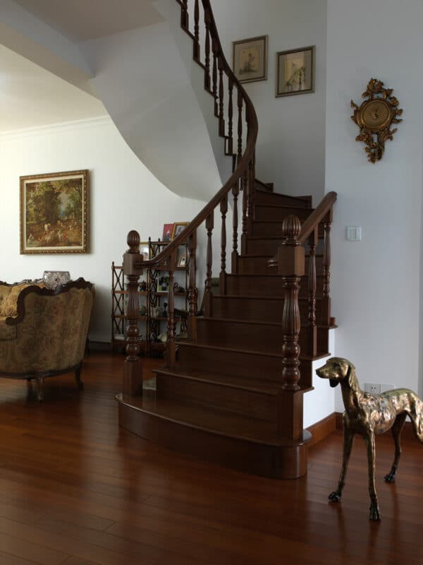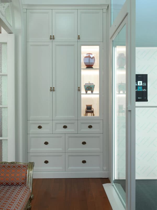 The villa radiates Shanghai charm: vintage designer furniture, soft patterned fabrics, and generous natural light from floor-to-ceiling windows. Smooth wooden floors connect each space, creating warmth and continuity. Perhaps the most special part of this story lies in the details: the handcrafted spiral staircase, designed by the owner twenty years ago, now stands side by side with their new SWIFT Pro — a lift they designed themselves using Build Your Lift. Two generations of design, connected by the same vision of home. For them, SWIFT Pro is more than a lift. It brings ease, comfort, and confidence to everyday life — allowing them to move freely and continue enjoying the home they love.